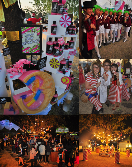 지난 8일, 러쉬의 크리스마스 신제품 발표회가 한강 난지지구에서 펼쳐진 ‘글로벌 개더링 코리아 2011’현장에서 열려, 페스티벌을 즐기러 온 수 많은 대중들에게 ‘미리’ 크리스마스를 선사했다. '찰리와 초콜릿 공장'에서 영감을 얻어 탄생한 2011 러쉬 크리스마스 신제품들은 ‘뉴 인벤션’이라는 테마 아래 동화적 상상력과 혁신적 아이디어가 더해진 '발명품'의 진수를 선보이며, 신제품 출시에 대한 기대감을 높여주었다. 한강에 지어진 ‘러쉬 크리스마스 원더랜드’세트에서는 제품을 상징하는 캐릭터 퍼포먼스를, ‘글로벌 개더링 코리아 2011’ 무대 곳곳에서는 움파룸파 요정 퍼레이드를 선보여 취재진과 관중들의 카메라 세례를 한 몸에 받으며, 브랜드에 대한 인지도와 선호도를 높이는 계기를 마련했다. 뿐만 아니라, 시월에 만나보는 ‘눈’의 낭만과 패셔니스타들의 머스트 점검 아이템 ‘화장대’, 그리고 추억의 테마 파크에서 튀어나온 ‘졸타’ 기계가 선사한 행운 이벤트 등, 마치 동심의 세계로 돌아가 판타지를 즐기는 것 같은 ‘미리’ 크리스마스 분위기를 연출하며 페스티벌의 재미를 크게 고조시켰다. 한편 ‘찰리와 초콜릿 공장’의 상상력이 빚어낸 러쉬 크리스마스 발명품들은 리미티드 에디션 형태로 오는 10월 28일 전국 매장과 온라인 사이트에서 동시에 출시될 예정이다. jiyou@osen.co.kr 러쉬 제공.