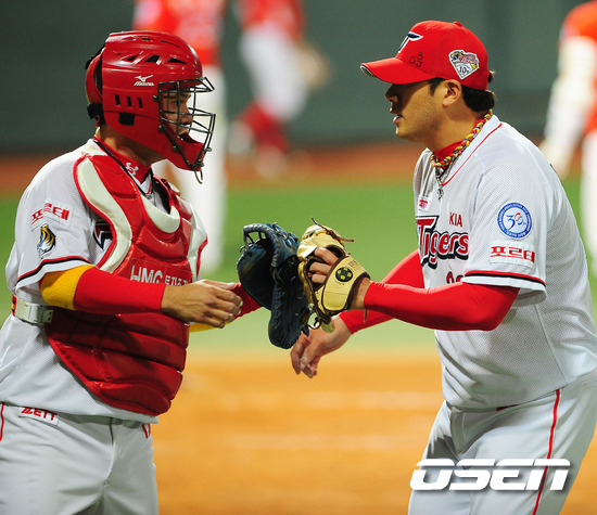 '2011 롯데카드 프로야구' KIA 타이거즈와 SK 와이번스의 준플레이오프 3차전이 11일 오후 광주 무등 야구장에서 열렸다. 2회초를 마무리 한 KIA 선발 서재응이 차일목과 하이파이브를 하고 있다. 준플레이오프 3차전에서는 KIA 타이거즈의 '해외파 우완' 서재응과 SK 와이번스의 외국인 투수 브라이언 고든이 맞대결을 펼쳤다. 3선승제의 준플레이오프에서 각각 1승 1패로 한 번씩 주고받은 KIA와 SK는 플레이오프 진출을 위해서 꼭 잡아야 하는 3차전에서 총력을 기울이겠다는 각오다. 지난 1~2차전에서 보여주듯 철저한 투수전 양상으로 흐르는 준플레이오프에서 SK는 강점인 불펜의 힘을 극대화 하고, KIA는 불펜의 약점을 얼마나 상쇄할 수 있느냐가 관건이다. 또 양 팀 모두 극도의 빈타에서 탈출해야 한다. 앞서 SK는 시즌 종반 김성근 전 감독의 사퇴로 내홍을 앓았고 KIA는 시즌 중반 1위에서 4위로 떨어지는 심각한 성적 하락을 겪은 바 있다. 한편 프로야구 준플레이오프는 5전 3선승제로 진행된다. 8~9일 인천 문학구장에서 2연전이 진행됐고, 11~12일 광주구장에서 3, 4차전이 이어진다. 4차전까지 승부를 가리지 못하면 14일 문학구장으로 돌아와 최종전을 벌인다. / rumi@osen.co.kr