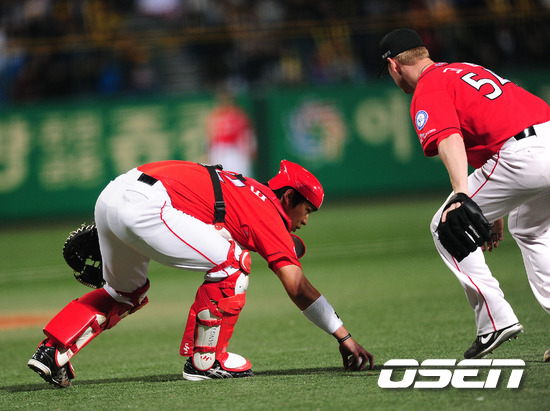 '2011 롯데카드 프로야구' KIA 타이거즈와 SK 와이번스의 준플레이오프 3차전이 11일 오후 광주 무등 야구장에서 열렸다. 2회말 최희섭의 내야플라이 타구를 SK 정상호 포수가 공을 놓치며 진루시키고 있다. 준플레이오프 3차전에서는 KIA 타이거즈의 '해외파 우완' 서재응과 SK 와이번스의 외국인 투수 브라이언 고든이 맞대결을 펼쳤다. 3선승제의 준플레이오프에서 각각 1승 1패로 한 번씩 주고받은 KIA와 SK는 플레이오프 진출을 위해서 꼭 잡아야 하는 3차전에서 총력을 기울이겠다는 각오다. 지난 1~2차전에서 보여주듯 철저한 투수전 양상으로 흐르는 준플레이오프에서 SK는 강점인 불펜의 힘을 극대화 하고, KIA는 불펜의 약점을 얼마나 상쇄할 수 있느냐가 관건이다. 또 양 팀 모두 극도의 빈타에서 탈출해야 한다. 앞서 SK는 시즌 종반 김성근 전 감독의 사퇴로 내홍을 앓았고 KIA는 시즌 중반 1위에서 4위로 떨어지는 심각한 성적 하락을 겪은 바 있다. 한편 프로야구 준플레이오프는 5전 3선승제로 진행된다. 8~9일 인천 문학구장에서 2연전이 진행됐고, 11~12일 광주구장에서 3, 4차전이 이어진다. 4차전까지 승부를 가리지 못하면 14일 문학구장으로 돌아와 최종전을 벌인다./ ajyoung@osen.co.kr