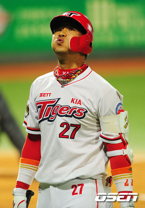'2011 롯데카드 프로야구' KIA 타이거즈와 SK 와이번스의 준플레이오프 3차전이 11일 오후 광주 무등 야구장에서 열렸다. 4회말 2사 주자 1루 KIA 김상현이 자신의 홈런성 타구가 좌익수 플라이 아웃 되자 한숨을 쉬고 있다. 준플레이오프 3차전에서는 KIA 타이거즈의 '해외파 우완' 서재응과 SK 와이번스의 외국인 투수 브라이언 고든이 맞대결을 펼쳤다. 3선승제의 준플레이오프에서 각각 1승 1패로 한 번씩 주고받은 KIA와 SK는 플레이오프 진출을 위해서 꼭 잡아야 하는 3차전에서 총력을 기울이겠다는 각오다. 지난 1~2차전에서 보여주듯 철저한 투수전 양상으로 흐르는 준플레이오프에서 SK는 강점인 불펜의 힘을 극대화 하고, KIA는 불펜의 약점을 얼마나 상쇄할 수 있느냐가 관건이다. 또 양 팀 모두 극도의 빈타에서 탈출해야 한다. 앞서 SK는 시즌 종반 김성근 전 감독의 사퇴로 내홍을 앓았고 KIA는 시즌 중반 1위에서 4위로 떨어지는 심각한 성적 하락을 겪은 바 있다. 한편 프로야구 준플레이오프는 5전 3선승제로 진행된다. 8~9일 인천 문학구장에서 2연전이 진행됐고, 11~12일 광주구장에서 3, 4차전이 이어진다. 4차전까지 승부를 가리지 못하면 14일 문학구장으로 돌아와 최종전을 벌인다. / rumi@osen.co.kr