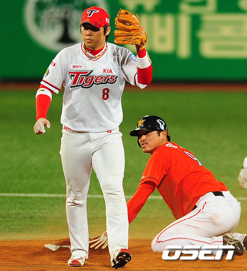 '2011 롯데카드 프로야구' KIA 타이거즈와 SK 와이번스의 준플레이오프 3차전이 11일 오후 광주 무등 야구장에서 열렸다. 5회초 2사 주자 1루 SK 정근우 타석에서 1루 주자 임훈이 2루 도루를 시도, KIA 2루수 안치홍이 태그아웃 시킨 후 글러브를 올리고 있다. 준플레이오프 3차전에서는 KIA 타이거즈의 '해외파 우완' 서재응과 SK 와이번스의 외국인 투수 브라이언 고든이 맞대결을 펼쳤다. 3선승제의 준플레이오프에서 각각 1승 1패로 한 번씩 주고받은 KIA와 SK는 플레이오프 진출을 위해서 꼭 잡아야 하는 3차전에서 총력을 기울이겠다는 각오다. 지난 1~2차전에서 보여주듯 철저한 투수전 양상으로 흐르는 준플레이오프에서 SK는 강점인 불펜의 힘을 극대화 하고, KIA는 불펜의 약점을 얼마나 상쇄할 수 있느냐가 관건이다. 또 양 팀 모두 극도의 빈타에서 탈출해야 한다. 앞서 SK는 시즌 종반 김성근 전 감독의 사퇴로 내홍을 앓았고 KIA는 시즌 중반 1위에서 4위로 떨어지는 심각한 성적 하락을 겪은 바 있다. 한편 프로야구 준플레이오프는 5전 3선승제로 진행된다. 8~9일 인천 문학구장에서 2연전이 진행됐고, 11~12일 광주구장에서 3, 4차전이 이어진다. 4차전까지 승부를 가리지 못하면 14일 문학구장으로 돌아와 최종전을 벌인다. / rumi@osen.co.kr