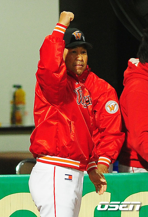 '2011 롯데카드 프로야구' KIA 타이거즈와 SK 와이번스의 준플레이오프 3차전이 11일 오후 광주 무등 야구장에서 열렸다. 6회초 1사 주자 만루 SK 안치용이 중견수 왼쪽 2타점 선취 적시타를 날리자 SK 이만수 감독 대행이 덕아웃 밖으로 나와 기뻐하고 있다. 준플레이오프 3차전에서는 KIA 타이거즈의 '해외파 우완' 서재응과 SK 와이번스의 외국인 투수 브라이언 고든이 맞대결을 펼쳤다. 3선승제의 준플레이오프에서 각각 1승 1패로 한 번씩 주고받은 KIA와 SK는 플레이오프 진출을 위해서 꼭 잡아야 하는 3차전에서 총력을 기울이겠다는 각오다. 지난 1~2차전에서 보여주듯 철저한 투수전 양상으로 흐르는 준플레이오프에서 SK는 강점인 불펜의 힘을 극대화 하고, KIA는 불펜의 약점을 얼마나 상쇄할 수 있느냐가 관건이다. 또 양 팀 모두 극도의 빈타에서 탈출해야 한다. 앞서 SK는 시즌 종반 김성근 전 감독의 사퇴로 내홍을 앓았고 KIA는 시즌 중반 1위에서 4위로 떨어지는 심각한 성적 하락을 겪은 바 있다. 한편 프로야구 준플레이오프는 5전 3선승제로 진행된다. 8~9일 인천 문학구장에서 2연전이 진행됐고, 11~12일 광주구장에서 3, 4차전이 이어진다. 4차전까지 승부를 가리지 못하면 14일 문학구장으로 돌아와 최종전을 벌인다. / rumi@osen.co.kr