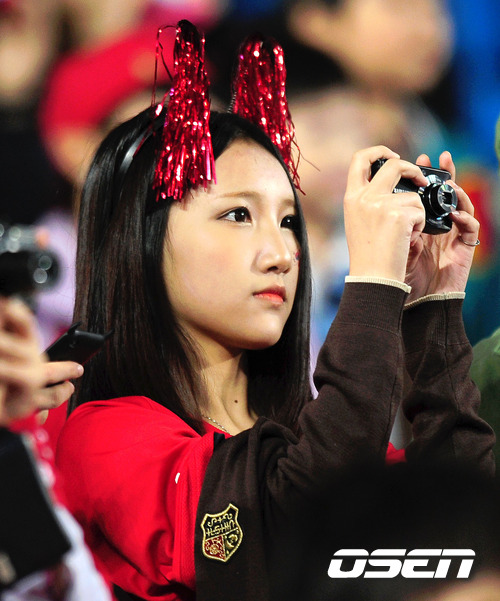 조광래 감독이 이끄는 축구대표팀이 11일 오후 수원월드컵경기장에서 아랍에미리트연합(UAE)와 2014 브라질 월드컵 아시아지역 3차예선 B조 3차전을 가졌다. 미녀 팬이 선수들을 카메라에 담고 있다. 1승1무를 기록하고 있는 대표팀은 향후 중동 2경기 원정(UAE-레바논)의 부담감을 덜기 위해 반드시 승리해야 하는 상황이다. 조광래 감독은 공격진에 구자철-기성용-이용래로 이어지는 삼각형 미드필더에 박주영과 지동원, '조커' 이동국을 내세워 대량 득점을 노리고 있다. /spjj@osen.co.kr