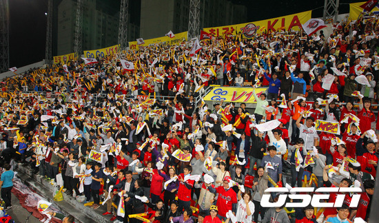 '2011 롯데카드 프로야구' KIA 타이거즈와 SK 와이번스의 준플레이오프 3차전이 11일 오후 광주 무등 야구장에서 열렸다. 야구팬들이 열띤응원을 펼치고 있다. 준플레이오프 3차전에서는 KIA 타이거즈의 '해외파 우완' 서재응과 SK 와이번스의 외국인 투수 브라이언 고든이 맞대결을 펼쳤다. 3선승제의 준플레이오프에서 각각 1승 1패로 한 번씩 주고받은 KIA와 SK는 플레이오프 진출을 위해서 꼭 잡아야 하는 3차전에서 총력을 기울이겠다는 각오다. 지난 1~2차전에서 보여주듯 철저한 투수전 양상으로 흐르는 준플레이오프에서 SK는 강점인 불펜의 힘을 극대화 하고, KIA는 불펜의 약점을 얼마나 상쇄할 수 있느냐가 관건이다. 또 양 팀 모두 극도의 빈타에서 탈출해야 한다. 앞서 SK는 시즌 종반 김성근 전 감독의 사퇴로 내홍을 앓았고 KIA는 시즌 중반 1위에서 4위로 떨어지는 심각한 성적 하락을 겪은 바 있다. 한편 프로야구 준플레이오프는 5전 3선승제로 진행된다. 8~9일 인천 문학구장에서 2연전이 진행됐고, 11~12일 광주구장에서 3, 4차전이 이어진다. 4차전까지 승부를 가리지 못하면 14일 문학구장으로 돌아와 최종전을 벌인다. / rumi@osen.co.kr