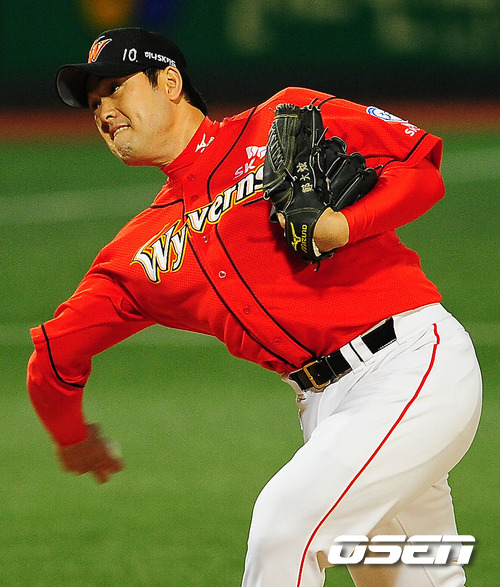 '2011 롯데카드 프로야구' KIA 타이거즈와 SK 와이번스의 준플레이오프 3차전이 11일 오후 광주 무등 야구장에서 열렸다. 7회말 무사 주자 1루 KIA 김상현 타석에서 마운드에 오른 SK 정대현이 힘차게 공을 뿌리고 있다. 준플레이오프 3차전에서는 KIA 타이거즈의 '해외파 우완' 서재응과 SK 와이번스의 외국인 투수 브라이언 고든이 맞대결을 펼쳤다. 3선승제의 준플레이오프에서 각각 1승 1패로 한 번씩 주고받은 KIA와 SK는 플레이오프 진출을 위해서 꼭 잡아야 하는 3차전에서 총력을 기울이겠다는 각오다. 지난 1~2차전에서 보여주듯 철저한 투수전 양상으로 흐르는 준플레이오프에서 SK는 강점인 불펜의 힘을 극대화 하고, KIA는 불펜의 약점을 얼마나 상쇄할 수 있느냐가 관건이다. 또 양 팀 모두 극도의 빈타에서 탈출해야 한다. 앞서 SK는 시즌 종반 김성근 전 감독의 사퇴로 내홍을 앓았고 KIA는 시즌 중반 1위에서 4위로 떨어지는 심각한 성적 하락을 겪은 바 있다. 한편 프로야구 준플레이오프는 5전 3선승제로 진행된다. 8~9일 인천 문학구장에서 2연전이 진행됐고, 11~12일 광주구장에서 3, 4차전이 이어진다. 4차전까지 승부를 가리지 못하면 14일 문학구장으로 돌아와 최종전을 벌인다. / rumi@osen.co.kr