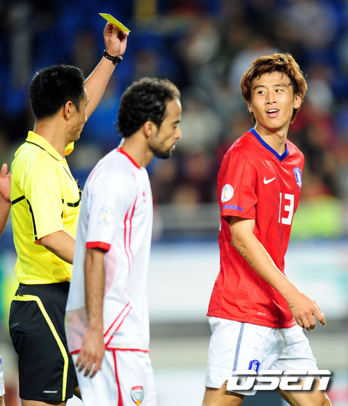 조광래 감독이 이끄는 축구대표팀이 11일 오후 수원월드컵경기장에서 아랍에미리트연합(UAE)와 2014 브라질 월드컵 아시아지역 3차예선 B조 3차전을 가졌다. 전반 구자철이 헐리우드 액션으로 옐로 카드를 받고 있다. 1승1무를 기록하고 있는 대표팀은 향후 중동 2경기 원정(UAE-레바논)의 부담감을 덜기 위해 반드시 승리해야 하는 상황이다. 조광래 감독은 공격진에 구자철-기성용-이용래로 이어지는 삼각형 미드필더에 박주영과 지동원, '조커' 이동국을 내세워 대량 득점을 노리고 있다. /spjj@osen.co.kr