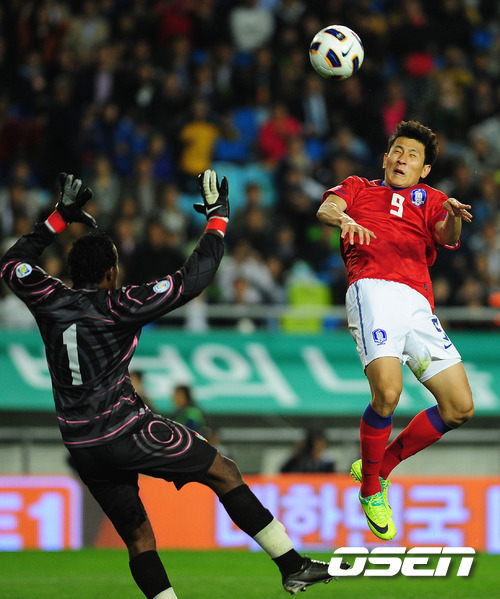 조광래 감독이 이끄는 축구대표팀이 11일 오후 수원월드컵경기장에서 아랍에미리트연합(UAE)와 2014 브라질 월드컵 아시아지역 3차예선 B조 3차전을 가졌다. 후반 한국 지동원이 헤딩슛을 시도하고 있다. 1승1무를 기록하고 있는 대표팀은 향후 중동 2경기 원정(UAE-레바논)의 부담감을 덜기 위해 반드시 승리해야 하는 상황이다. 조광래 감독은 공격진에 구자철-기성용-이용래로 이어지는 삼각형 미드필더에 박주영과 지동원, '조커' 이동국을 내세워 대량 득점을 노리고 있다. /jpnews@osen.co.kr