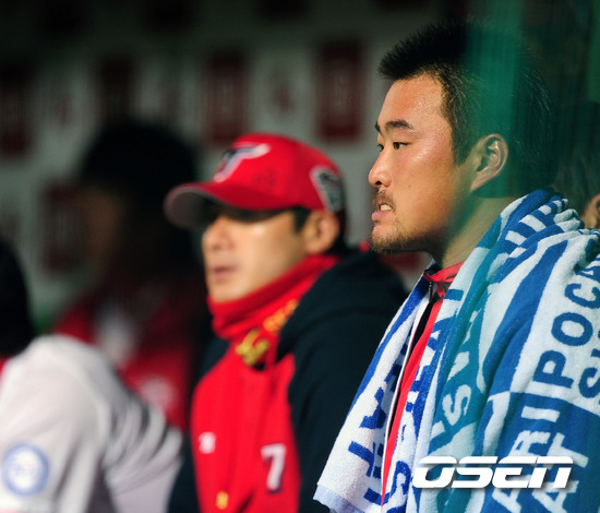 '2011 롯데카드 프로야구' KIA 타이거즈와 SK 와이번스의 준플레이오프 3차전이 11일 오후 광주 무등 야구장에서 열렸다. 선발 고든의 무실점 호투와 안치용의 결승타에 힘입어 SK가 2-0 완승을 거두었다. 9회말 KIA 공격때 김진우가 경기를 관전하고 있다. 12일 광주구장에서 열리는 2011 롯데카드 프로야구 SK와 KIA의 준플레이오프 4차전. 11일 승리로 2승1패가 된 SK는 3선승제 준플레이오프에서 1승만 남긴 상태다. 반면 KIA는 2패에 몰리며 무조건 이겨야 하는 극박한 상황에 몰렸다. 3선승제의 준플레이오프에서 1승2패 KIA는 플레이오프 진출을 위해서 꼭 잡아야 하는 4차전에서 총력을 기울이겠다는 각오다. 한편 프로야구 준플레이오프는 5전 3선승제로 진행된다. 8~9일 인천 문학구장에서 2연전이 진행됐고, 11~12일 광주구장에서 3, 4차전이 이어진다. 4차전까지 승부를 가리지 못하면 14일 문학구장으로 돌아와 최종전을 벌인다./ ajyoung@osen.co.kr