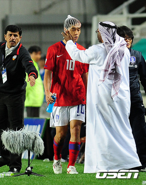 조광래 감독이 이끄는 축구대표팀이 11일 오후 수원월드컵경기장에서 아랍에미리트연합(UAE)와 2014 브라질 월드컵 아시아지역 3차예선 B조 3차전을 가졌다. 후반 한국 박주영이 부상으로 교체되며 UAE 코칭스태프의 격려를 받고 있다. 1승1무를 기록하고 있는 대표팀은 향후 중동 2경기 원정(UAE-레바논)의 부담감을 덜기 위해 반드시 승리해야 하는 상황이다. 조광래 감독은 공격진에 구자철-기성용-이용래로 이어지는 삼각형 미드필더에 박주영과 지동원, '조커' 이동국을 내세워 대량 득점을 노리고 있다. /jpnews@osen.co.kr