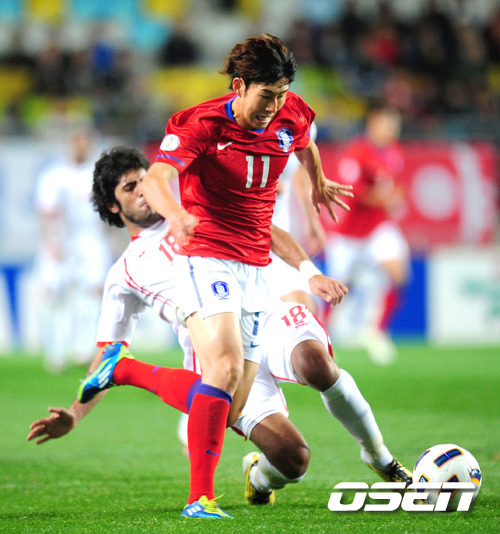 '캡틴박' 박주영(26, 아스날)이 A매치 3경기 연속골로 축구 대표팀에 승리를 안겼다. 후반 손흥민이 힘차게 UAE 문전을 향해 드리블을 하고 있다. 조광래 감독이 지휘하는 한국 축구대표팀은 11일 수원 월드컵경기장서 열린 아랍에미리트연합(UAE)와 2014년 브라질 월드컵 아시아지역 3차예선 B조 3차전에서 박주영의 선제골과 상대 수비의 자책골에 힘입어 2-1 승리를 거뒀다. 이로써 한국은 최근 2경기 무승부의 부진을 씻어내고 승리를 차지하며 다음달 예정된 중동 원정 2경기(UAE-레바논)를 상승세로 맞이할 수 있게 됐다. 또한 한국은 B조에서 2승 1무를 기록하며 선두를 달렸다. 한국은 2위 쿠웨이트가 밤 11시(한국시간)에 열리는 레바논과 경기서 6골차로 이기지 않는 이상 1위를 지킨다. /spjj@osen.co.kr