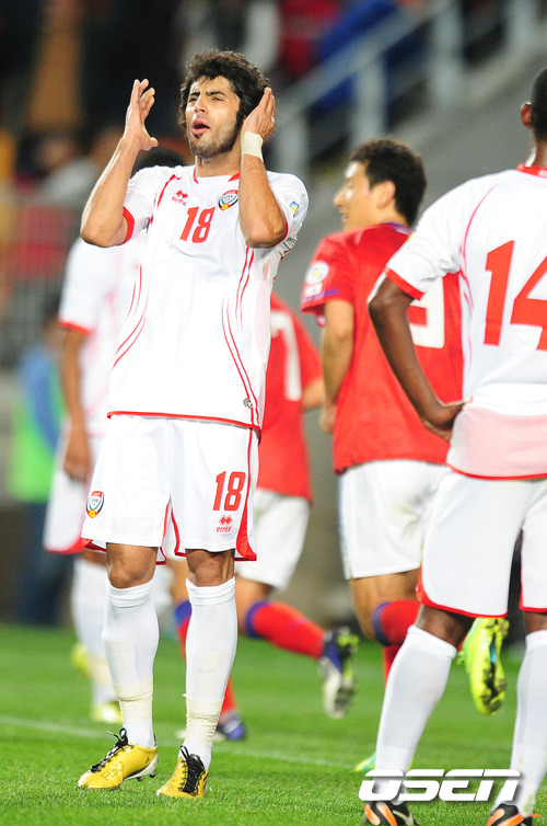 '캡틴박' 박주영(26, 아스날)이 A매치 3경기 연속골로 축구 대표팀에 승리를 안겼다. 후반 UAE가 자책골을 허용하자 압둘라 무사가 아쉬워 하고 있다. 조광래 감독이 지휘하는 한국 축구대표팀은 11일 수원 월드컵경기장서 열린 아랍에미리트연합(UAE)와 2014년 브라질 월드컵 아시아지역 3차예선 B조 3차전에서 박주영의 선제골과 상대 수비의 자책골에 힘입어 2-1 승리를 거뒀다. 이로써 한국은 최근 2경기 무승부의 부진을 씻어내고 승리를 차지하며 다음달 예정된 중동 원정 2경기(UAE-레바논)를 상승세로 맞이할 수 있게 됐다. 또한 한국은 B조에서 2승 1무를 기록하며 선두를 달렸다. 한국은 2위 쿠웨이트가 밤 11시(한국시간)에 열리는 레바논과 경기서 6골차로 이기지 않는 이상 1위를 지킨다. /spjj@osen.co.kr