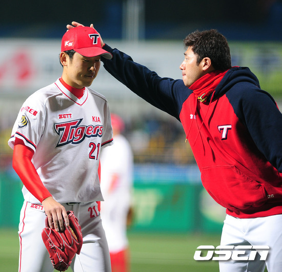 '2011 롯데카드 프로야구' KIA 타이거즈와 SK 와이번스의 준플레이오프 4차전이 12일 오후 광주 무등 야구장에서 열렸다. KIA 선발 윤석민이 2⅓이닝 3실점을 허용하며 강판 당하면서 서재응의 위로를 받고 있다. 3선승제의 준플레이오프에서 1승 2패로 벼랑끝에 몰린 KIA는 남은 두경기를 모두 이겨야만 플레이오프에 진출할 수 있는 상황이다. 이에 KIA는 1차전에서 완투승을 거둔 윤석민이 3일 휴식 후 바로 선발 등판시켰다. 시리즈 전적 1승2패로 몰린 KIA의 경우 윤석민의 등판 시점을 하루 앞당겼다. 조 감독의 얼쩔 수 없는 무리수다. 한편 SK는 이만수 감독대행은 5차전에서 에이스 김광현을 등판시키기로 했다. 2승1패로 앞선 만큼 4차전을 내주더라도 5차전에서 에이스 김광현을 투입해 승리할 수 있다는 자신감을 보여줬다. 지난 1~3차전에서 보여주듯 철저한 투수전 양상으로 흐르는 준플레이오프에서 SK는 강점인 불펜의 힘을 극대화 하고, KIA는 불펜의 약점을 얼마나 상쇄할 수 있느냐가 관건이다. 또 양 팀 모두 극도의 빈타에서 탈출해야 한다. 앞서 SK는 시즌 종반 김성근 전 감독의 사퇴로 내홍을 앓았고 KIA는 시즌 중반 1위에서 4위로 떨어지는 심각한 성적 하락을 겪은 바 있다. 한편 프로야구 준플레이오프는 5전 3선승제로 진행된다. 8~9일 인천 문학구장에서 2연전이 진행됐고, 11~12일 광주구장에서 3, 4차전이 이어진다. 4차전까지 승부를 가리지 못하면 14일 문학구장으로 돌아와 최종전을 벌인다. / ajyoung@osen.co.kr