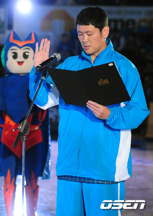 13일 오후 전주체육관에서 열린 '2011-2012 KB국민카드 프로농구' 정규리그 전주 KCC와 서울 SK의 개막전에서 KCC 추승균이 선수 대표로 개막선서를 하고 있다. 허재 감독이 지휘하는 KCC는 지난 시즌 디펜딩 챔피언으로서 이번 시즌에도 우승을 노리며 2연패를 꿈꾸고 있다. 이번 개막전에서 KCC는 분명 SK에 비해 전력상 우세를 점하고 있다. 토종 빅맨 하승진이라는 최고의 카드가 있고 가드진에는 최정상급의 선수 전태풍이 있다. 매치업에서 SK에 절대 밀리지 않는 것. 하지만 KCC는 지난 4년 동안 개막전에서 단 한번도 승리하지 못하는 '개막전 징크스'에 빠져 있다. 한편 문경은 감독대행-전희철 코치 체제로 체질개선에 나선 SK는 비록 약체로 지목되고 있지만, SK의 가드진 만큼은 어느 팀에 견줘도 경쟁력이 넘친다. 주희정과 김효범, 변기훈에 신인 김선형까지 가세해 보다 다양한 조합과 패턴을 기대할 수 있게 됐다. KCC가 개막전 징크스를 깨고 승리를 거두며 스타트를 기분 좋게 끊을 수 있을지, 관심거리다. / rumi@osen.co.kr