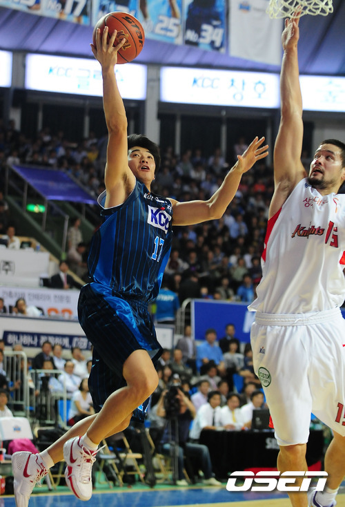 13일 오후 전주체육관에서 열린 '2011-2012 KB국민카드 프로농구' 정규리그 전주 KCC와 서울 SK의 개막전에서 2쿼터 KCC 신명호가 SK 김민수를 피해 속공을 시도하고 있다. 허재 감독이 지휘하는 KCC는 지난 시즌 디펜딩 챔피언으로서 이번 시즌에도 우승을 노리며 2연패를 꿈꾸고 있다. 이번 개막전에서 KCC는 분명 SK에 비해 전력상 우세를 점하고 있다. 토종 빅맨 하승진이라는 최고의 카드가 있고 가드진에는 최정상급의 선수 전태풍이 있다. 매치업에서 SK에 절대 밀리지 않는 것. 하지만 KCC는 지난 4년 동안 개막전에서 단 한번도 승리하지 못하는 '개막전 징크스'에 빠져 있다. 한편 문경은 감독대행-전희철 코치 체제로 체질개선에 나선 SK는 비록 약체로 지목되고 있지만, SK의 가드진 만큼은 어느 팀에 견줘도 경쟁력이 넘친다. 주희정과 김효범, 변기훈에 신인 김선형까지 가세해 보다 다양한 조합과 패턴을 기대할 수 있게 됐다. KCC가 개막전 징크스를 깨고 승리를 거두며 스타트를 기분 좋게 끊을 수 있을지, 관심거리다. / rumi@osen.co.kr