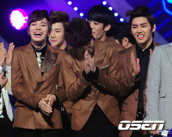 [OSEN= 백승철 인턴기자] 13일 오후 서울 상암동 CJ E&M 센터에서 공개된 'Mnet 엠카운트다운'(엠카)에서 1위를 차지한 인피니티가 기뻐하고 있다. 이날 엠카는 토니안과 이홍기의 사회로 핫도그, 조PD, 간미연, 싸이먼D, 살찐 고양이, 보이프렌드, 김규종, 휘성, 허각, 씨리얼, 인피니트, FT아일랜드, 다비치, 브라운 아이드 걸스, 슈퍼주니어 등이 화려한 공연을 선보였다. / baik@osen.co.kr