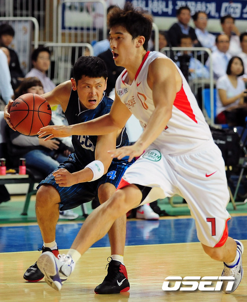 13일 오후 전주체육관에서 열린 '2011-2012 KB국민카드 프로농구' 정규리그 전주 KCC와 서울 SK의 개막전에서 1쿼터 KCC 추승균이 SK 정선규를 돌파하고 있다. 허재 감독이 지휘하는 KCC는 지난 시즌 디펜딩 챔피언으로서 이번 시즌에도 우승을 노리며 2연패를 꿈꾸고 있다. 이번 개막전에서 KCC는 분명 SK에 비해 전력상 우세를 점하고 있다. 토종 빅맨 하승진이라는 최고의 카드가 있고 가드진에는 최정상급의 선수 전태풍이 있다. 매치업에서 SK에 절대 밀리지 않는 것. 하지만 KCC는 지난 4년 동안 개막전에서 단 한번도 승리하지 못하는 '개막전 징크스'에 빠져 있다. 한편 문경은 감독대행-전희철 코치 체제로 체질개선에 나선 SK는 비록 약체로 지목되고 있지만, SK의 가드진 만큼은 어느 팀에 견줘도 경쟁력이 넘친다. 주희정과 김효범, 변기훈에 신인 김선형까지 가세해 보다 다양한 조합과 패턴을 기대할 수 있게 됐다. KCC가 개막전 징크스를 깨고 승리를 거두며 스타트를 기분 좋게 끊을 수 있을지, 관심거리다. / rumi@osen.co.kr