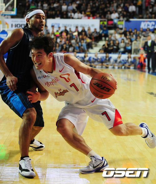 13일 오후 전주체육관에서 열린 '2011-2012 KB국민카드 프로농구' 정규리그 전주 KCC와 서울 SK의 개막전에서 3쿼터 SK 변기훈이 KCC 전태풍을 돌파하고 있다. 허재 감독이 지휘하는 KCC는 지난 시즌 디펜딩 챔피언으로서 이번 시즌에도 우승을 노리며 2연패를 꿈꾸고 있다. 이번 개막전에서 KCC는 분명 SK에 비해 전력상 우세를 점하고 있다. 토종 빅맨 하승진이라는 최고의 카드가 있고 가드진에는 최정상급의 선수 전태풍이 있다. 매치업에서 SK에 절대 밀리지 않는 것. 하지만 KCC는 지난 4년 동안 개막전에서 단 한번도 승리하지 못하는 '개막전 징크스'에 빠져 있다. 한편 문경은 감독대행-전희철 코치 체제로 체질개선에 나선 SK는 비록 약체로 지목되고 있지만, SK의 가드진 만큼은 어느 팀에 견줘도 경쟁력이 넘친다. 주희정과 김효범, 변기훈에 신인 김선형까지 가세해 보다 다양한 조합과 패턴을 기대할 수 있게 됐다. KCC가 개막전 징크스를 깨고 승리를 거두며 스타트를 기분 좋게 끊을 수 있을지, 관심거리다. / rumi@osen.co.kr