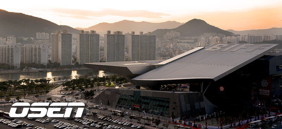 13일 오후 제16회 부산국제영화제 폐막을 하루 앞둔 부산 해운대구 영화의 전당에 노을이 지고 있다. 국제영화제를 위해 지어진 영화의전당은 시네마운틴, 피프힐, 더블콘 등 총 3개의 건물로 구성돼 있고 더블콘에서 뻗어 나온 지붕(빅루프) 이 한쪽 기둥만으로 받치고 있는 것이 특색이다. 또 지붕에는 LED조명이 설치되어 있어 화려하고도 우아한 영화의전당 조명을 감상할 수 있다. / soul1014@osen.co.kr