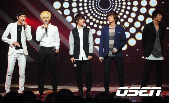 [OSEN= 백승철 인턴기자] 13일 오후 서울 상암동 CJ E&M 센터에서 공개된 'Mnet 엠카운트다운'(엠카)에서 FT아일랜드가 사전녹화가 나가는중 팬들에게 인사를 하고 있다. 이날 엠카는 토니안과 이홍기의 사회로 핫도그, 조PD, 간미연, 싸이먼D, 살찐 고양이, 보이프렌드, 김규종, 휘성, 허각, 씨리얼, 인피니트, FT아일랜드, 다비치, 브라운 아이드 걸스, 슈퍼주니어 등이 화려한 공연을 선보였다. / baik@osen.co.kr