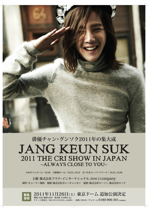 배우 장근석이 일본 아레나투어 '2011 JANG KEUN SUK ARENA TOUR THE CRI SHOW IN JAPAN-ALWAYS CLOSE TO YOU'를 통해 또 한 번의 치명적인 ‘근짱 태풍’을 불러일으키며 일본 열도를 달굴 전망이다. 지난 9월 티켓 오픈 당시, 5분 만에 총 6만 여석의 공연 전석을 매진시키며 명실상부 최고의 한류스타 장근석의 파워를 입증한 '2011 JANG KEUN SUK ARENA TOUR THE CRI SHOW IN JAPAN-ALWAYS CLOSE TO YOU'는 일본의 주요 도시인 나고야(10/20), 오사카(10/22~23), 도쿄(10/25~26)까지 총 3개 도시에서 총 5회 공연으로 펼쳐질 예정. 이번 공연의 공식명칭인 '2011 JANG KEUN SUK ARENA TOUR THE CRI SHOW IN JAPAN-ALWAYS CLOSE TO YOU'에서 'THE CRI SHOW'는 배우 장근석만의 고유한 콘서트 브랜드 네이밍으로서, 여기서 'Cri'는 Critical(크리티컬, 치명적인)의 앞자를 빌려온 말로 2011년 아레나 투어를 시작으로 아시아 전역의 팬들에게 장근석의 치명적인 매력을 보여주겠다는 뜻을 내포하고 있다. 특히, 장근석이 직접 기획해 더욱 큰 관심과 기대를 모으고 있는 이번 공연은 무대 설치 및 부대비용으로 약 35억원이 투자되었으며, 공연장 규모가 커지면서 관객과 가까이에서 소통하길 원한 장근석의 아이디어로 와이어와 특수 리프트 등을 설치, 기존 한류 배우들이 진행한 팬 미팅 형식의 공연이나 가수들의 퍼포먼스 위주 공연 형태에서 벗어나 이제껏 한 번도 보지 못한 신개념 쇼를 펼칠 계획이다. 또한 ‘아시아의 프린스’ 장근석의 자전적 이야기로 뮤지컬과 같은 전체적인 공연의 흐름을 이어가되 화려한 퍼포먼스와 에너지 넘치는 라이브, 팬들과 함께 하는 토크쇼 등 탄탄하고 짜임새 있는 구성을 더해 한시도 눈을 뗄 수 없는 무대를 연출함으로서 팬들의 눈과 귀를 사로잡는 최상의 공연이 될 것으로 기대된다. 그리고 이번 공연에서 장근석은 일본 오리콘차트 1위에 올랐던 데뷔 싱글 'Let me cry'를 시작으로 댄스, 발라드, 락 등 다양한 장르의 음악을 소화함은 물론 라운지 H를 통해 파격적인 디제잉쇼를 펼칠 예정이며, 지난 12일 정식 발매돼 화제가 되고 있는 중화권 첫 EP 앨범의 타이틀곡 'Gotta Getcha'를 비롯해 'Shake It', 'Run Away', 'Victory'까지 총 4곡과 이번 공연을 위해 특별히 준비한 신곡 2곡을 콘서트에서 처음으로 선보이게 된다. 이에 장근석의 소속사 트리제이컴퍼니의 김병건 이사는 “현재 장근석은 드라마 '사랑비' 촬영과 중화권 첫 EP앨범 발매, 학업 활동 등 눈코 뜰 새 없이 바쁜 일정을 소화하고 있는 중에도, 이번 공연을 위해 밤늦도록 보컬과 안무연습에 매진하며 조금 더 완벽한 공연을 선보이고자 만전을 기하고 있다. 철저히 준비하고 열심히 노력한 만큼 보시는 팬들은 물론 장근석 본인에게도 소중하고 의미 있는 공연이 될 것이라 기대한다”고 전했다. 한편, 오는 20일부터 26일까지 일본 3개 도시 총 5회에 걸쳐 진행될 배우 장근석의 일본 아레나투어 '2011 JANG KEUN SUK ARENA TOUR THE CRI SHOW IN JAPAN-ALWAYS CLOSE TO YOU'의 일정이 한 발 앞으로 다가오면서, ‘아시아의 프린스’ 장근석을 기다리는 팬들의 기대감 또한 최고치에 다다르고 있다. issue@osen.co.kr [사진] 트리제이 컴퍼니 제공