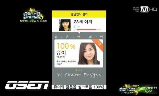[OSEN= 박미경 인턴기자]‘투개월‘의 김예림이 유이와 100% 싱크로율을 자랑했다. Mnet ‘슈퍼스타K3(이하 슈스케3)'는 14일 밤 TOP7 생방송 무대에 앞서 ‘슈스케3 백스테이지'를 통해 지난 주 TOP9의 생방송 뒷모습을 공개했다. 이날 방송에서는 TOP9이 지난 주 대기실에서 '연예인 닮은 꼴 찾기' 프로그램을 사용해 닮은 연예인을 찾으며 무대를 기다리는 영상이 방송을 탔다. 이 과정에서 사진을 찍어 닮은 연예인을 살펴 본 김예림은 애프터 스쿨 유이와 완벽하게 닮은 외모라는 결과를 받았다. 이 같은 결과를 얻은 김예림은 '평소 누구와 닮았다는 말을 듣느냐'는 제작진의 질문에 "박지윤을 닮았다는 이야기를 많이 듣는다. 또 신세경도 닮았다"고 답했다. 이와 관련, ‘슈스케3’ 담당 성형외과의는 "김예림은 얼굴 라인이 예쁜 편이다. 신세경을 닮았다고 생각한다. 신세경과 같이 V라인 안에 얼굴이 다 담겨있기 때문이다"고 덧붙였다. 한편, 오늘 ‘슈스케3‘ 생방송 무대는 경희대학교 평화의 전당으로 자리를 옮겨 방송된다. 미션 곡은 ‘그대에게 바치는 노래’라는 주제로 특별한 누군가를 위해 노래를 직접 선곡해 무대를 꾸민다. lucky@osen.co.kr ☞ hoppin 동영상 바로보기 [사진] '슈스케3' 화면 캡처.