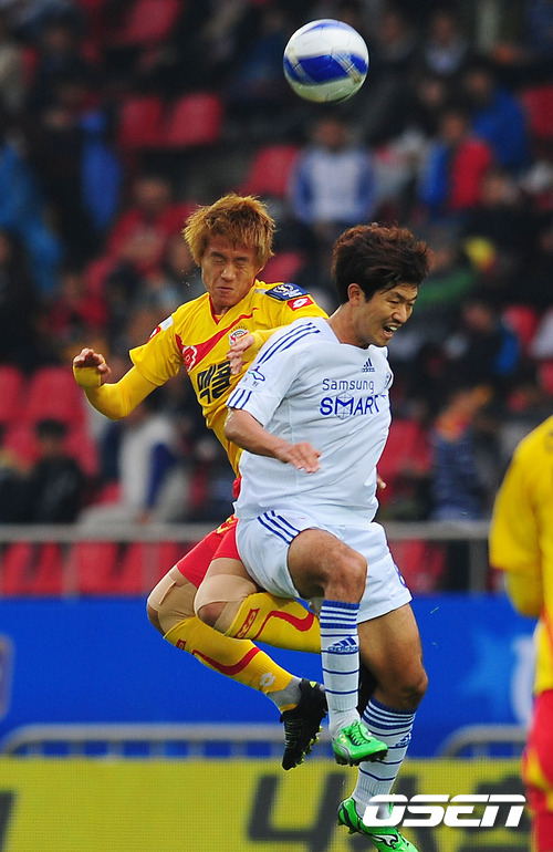 15일 오후 성남탄천종합운동장서 열린 '2011 하나은행 FA컵' 성남 일화와 수원 삼성의 결승전에서 전반 성남 홍철과 수원 이상호가 공중볼다툼을 하고 있다. 지난해 아시아축구연맹 챔피언스리그 정상에 올랐던 성남은 올해 정규리그에서의 부진을 FA컵 우승으로 씻어낼 각오. 특히 K리그서 6강 플레이오프 진출이 사실상 힘겨운 10위인 성남은 아시아 챔피언스리그 진출권이 주어지는 FA컵에 모든 것을 걸었다. 지난 25일 전남 전에서 왼쪽 무릎 인대에 경미한 파열의 부상을 당한 성남의 김정우가 이 경기 복귀 예정이며 성남의 장신 공격수 라돈치치는 지난 2009년 수원과의 FA컵 결승전 승부차기 패배에 대해설욕을 다짐하고 있다. 이에 수원은 FA컵 사상 최초 3년 연속 정상 정복을 노리고 있다. 수원은 특히 지난 7월 입단해 11경기에서 7골을 넣은 스테보와 주장 염기훈의 한 방에 기대를 걸고 있다. 수원의 에이스 염기훈은 지난 해 FA컵 MVP를 차지하며 수원의 2연패를 이끌었으며 3연패 도전의 핵심적인 선수로 간주된다. 특히 이번 경기에서 승리와 함께 꼭 골을 넣어 2년 연속 MVP를 받겠다는 각오를 밝혀 관심거리다. 프로와 아마를 총 망라한 축구계의 잔치인 FA컵, 그 우승팀은 한국 축구의 지존이라는 명예와 우승상금 2억 원, 그리고 내년도 아시아축구연맹 챔피언스리그 출전권을 얻게 된다. / rumi@osen.co.kr