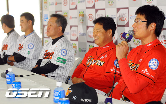 15일 오후 부산 사직구장 내 특설무대에서 열린 '2011 롯데카드 프로야구 포스트시즌 플레이오프 미디어데이'에서 SK 박정권이 이야기를 하고 있다. 이날 미디어데이에서 롯데는 양승호 감독과 송승준, 강민호가 SK는 이만수 감독대행과 박정권, 최정이 참석했다. 한편 2011 롯데카드 프로야구 플레이오프 1차전은 16일 오후 2시 부산 사직야구장서 열린다./ soul1014@osen.co.kr