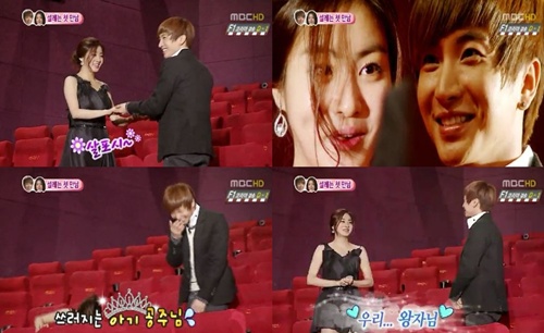 MBC '우리 결혼했어요'의 새커플 이특-강소라가 서로의 애칭을 정하며 화기애애한 시간을 가졌다. 15일 방송에는 지난주 첫만남을 가진 두 사람의 이야기가 그려졌다. 슈퍼주니어의 멤버들이 깜짝 등장해 수줍어하는 두 사람의 분위기를 풀어줬다. 멤버들은 첫번째 미션으로 두 사람의 눈빛 교환을 부탁했고, 두번째로 서로의 애칭을 지어주라고 했다. 이특은 고민하다 "우리 애기 공주님"이라고 지었고, "젖살이 있고, 드레스를 입고 온 첫 인상이 공주같았다"고 그 이유를 밝혔다. 강소라는 "그럼 나는 우리 왕자님으로 불러야할 것 같다. 그냥 오빠라고 부르려고 했는데, 공주라는 호칭에 비해 약한 것 같다"고 애칭을 지었다. 이어 강소라는 "관객 한 사람만 있는 곳에서 무대인사를 하는 느낌이었다. 이 넓은 공간에 두 사람만 있어서 좋았다"고 이특과 첫만남에 대해 밝혔다. 두 사람의 호칭에 슈주 멤버들은 물론 스튜디오 역시 "손발이 오그라든다"는 반응을 보였다. 이특은 이후 인터뷰에서 "자기야, 여보야가 좋을 것 같다. 다들 그렇게 부르지 않냐"고 추후 애칭을 바꾸겠다는 의사를 밝히기도 했다. bonbon@osen.co.kr ☞ hoppin 동영상 바로보기