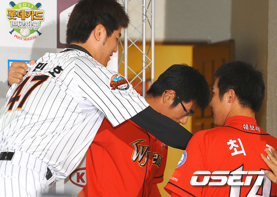 "(강)민호 형이 찬스 때 삼진도 당해주고 어이없는 플레이 한 번씩 해준다면 우리가 올라갈 것 같다". SK 와이번스의 '샤이 보이' 최정(24)이 15일 사직구장에서 열린 '2011 롯데카드 프로야구' 플레이오프 미디어데이에서 상대팀 선수로 나온 롯데 자이언츠의 강민호(26)에게 조용한 한 방을 날렸다. 최정은 이날 팀에 가장 위협이 될 것 같은 상대 선수로 롯데 손아섭(23)을 꼽으면서 반면 가장 만만한 선수로는 옆에 있던 강민호를 지목했다. 최정은 "민호 형이 찬스 때 삼진도 당해주고 어이없는 플레이 한 번씩 해준다면 우리가 올라갈 것 같다"고 말하며 장난기 어린 미소로 강민호의 미스 플레이를 기원했다. 그러나 최정의 바람이 이루어질지는 미지수다. 강민호의 올 시즌 SK전 성적이 나쁘기보다 오히려 좋은 편에 속하기 때문이다. 강민호는 올 시즌 타율 2할8푼9리를 기록하고 있지만 SK전 타율은 2할4푼2리에 그쳤다. 그러나 상대 장타율은 4할1푼9리로 전체 장타율 4할8푼에 비해 조금 모자랄 뿐이다. 출루율도 SK전(.356)과 전체(.366)이 비슷해 전체적으로 SK에 만만한 모습은 보이지 않고 있다. 구체적으로 분석하면 더 좋다. 강민호는 올 시즌 15개의 실책으로 전체 5위의 불명예를 안고 있지만 SK전에서는 1개의 실책에 불과했다. 최정이 지목했던 피삼진 또한 8개(전체 81개)에 불과했다. 7개 팀 가운데 KIA전(3개) 다음으로 가장 적은 개수다. 강민호는 오히려 시즌 47개의 볼넷 가운데 11개를 SK전에서 얻어내며 SK 투수들을 상대로 선구안을 자랑했다. 재미있는 사실은 오히려 최정의 상대 피삼진 개수가 더 많았다는 것이다. 최정은 올 시즌 72개의 삼진 가운데 롯데전에서 13개를 당해 팀에서 두 번째로 많은 롯데전 삼진을 기록했다. 최정은 올 시즌 5개의 실책만을 범했지만 롯데전에서 1개가 나왔다. 반면 전체 46개의 볼넷 중에서 롯데를 상대로는? 단 1개만을 얻어냈다. 과연 최정의 바람대로 강민호가 어이없는 플레이로 자멸하며 SK의 한국 시리즈 진출을 도울 수 있을까. 일단 지금까지의 모습으로 볼 때 그럴 가능성은 적어보인다. 오히려 그 전에 최정의 롯데전 분발을 바라는 게 우선일 듯 하다. autumnbb@osen.co.kr