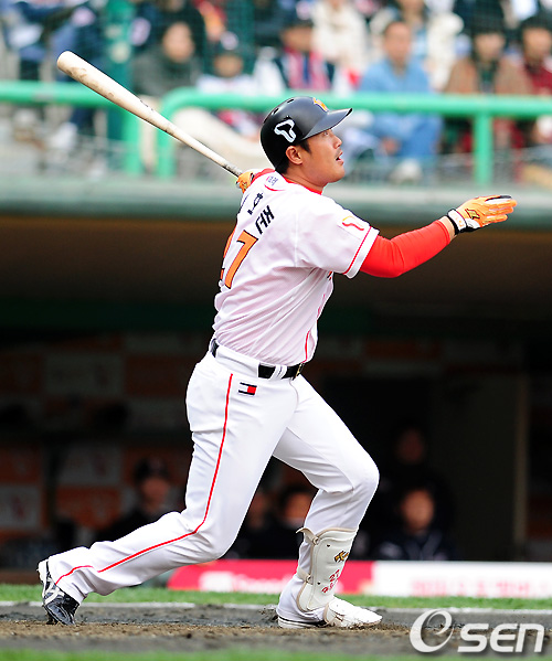SK 와이번스의 베테랑 우타자 이호준(35)이 롯데와의 플레이오프 1차전서 4번 타자로 선발 출장한다. 이호준은 16일 부산 사직구장서 열리는 롯데와의 플레이오프 1차전서 4번 지명타자로 선발출장한다. 지난 KIA와의 준플레이오프 2차전서 끝내기 중전 안타를 때렸던 이호준은 이만수 감독대행의 믿음 속에 4번 타자로 나선다. 올 시즌 이호준의 사직구장 성적 및 상대 선발 장원준과의 성적은 좋은 편이 아니었다. 이호준의 사직구장 성적은 9경기 2할(30타수 6안타) 5타점으로 아쉬움이 있었으며 장원준을 상대로는 4타수 무안타(볼넷 1개)에 그쳤다. 경기 전 이 대행은 이호준을 따로 불러 "부담 갖지 말고 긴장하지 말고 후속 타자에게 찬스를 미루지 말아라"라며 당부했다. 페넌트레이스 데이터보다 베테랑의 경험을 믿은 이 대행의 이야기였다. cleanupp@osen.co.kr