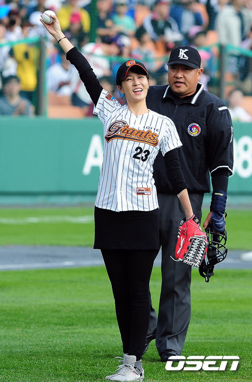 2011 롯데카드 프로야구 플레이오프 1차전시구에 나선 영화 '투혼'의 주연배우 김선아와 김주혁이 멋진 폼으로 시구와 시타를 하고 있다. 16일 부산사직구장에서 롯데 자이언츠와 SK 와이번스의 플레이오프 1차전 경기가 벌어졌다. 롯데는 예상대로 가장 컨디션이 좋은 장원준을 그대로 PO 1차전 선발로 내세웠고, 준플레이오프를 4차전으로 끝내면서 전력을 아낀 SK는 김광현을 1차전 선발 마운드에 올렸다. 롯데는 양승호 감독이 시리즈를 3연승으로 끝내겠다는 자신감을 나타냈고, SK는 준PO에서 먼저 1승을 내주고 3연승으로 리버스 스윕을 이끈 상승세를 바탕으로 치열한 경기가 예상된다. /spjj@osen.co.kr