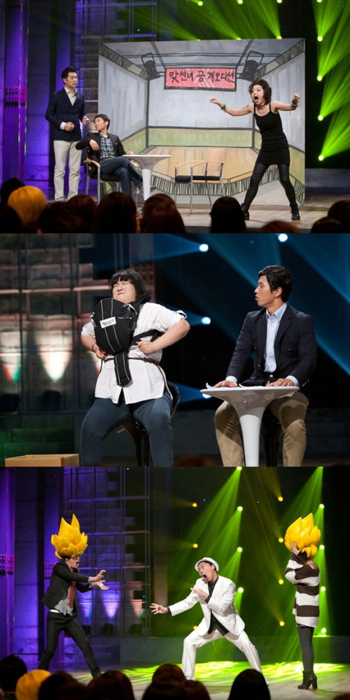 꼴찌들의 반란이 일어났다. 15일 밤 방송된 케이블 채널 tvN ‘코미디 빅 리그(이하 코빅)’ 5라운드가 하위권 팀들의 대약진으로 한층 흥미를 더했다. 만년 하위권 ‘꽃등심’이 2위로 급부상하고 한동안 주춤했던 ‘아메리카노’가 우승을 차지하는 등 이변이 속출하며 시청자들에게 재미와 감동을 선사했다. 이날 1위는 김미려, 안영미, 정주리의 ‘아메리카노(김미려, 안영미, 정주리)’. 지난 4라운드에서 처음 선보인 콩트 ‘내겐 너무 벅찬 그녀’를 다듬어 무대에 올렸다. ‘4G’ 팀의 김기욱, 양세형이 남성 상대역으로 우정출연하며 황당한 맞선 현장을 연출했다. 안영미는 얼굴 한가득 피어싱을 한 폭주족으로, 김미려는 오타쿠 블로그녀로 완벽 변신해 숨 막히는 재미를 선사했다. 그 결과 6~7위권에 머물며 부진하던 모습을 털고 당당히 승점 5점을 챙겼다. 그러나 ‘코빅’ 5라운드에서 아메리카노의 분전보다 빛을 발한 팀은 만년 하위권에서 2위로 급부상한 ‘꽃등심(이국주, 전환규)’이었다. 새 코너 ‘불만고발’에서 귀뚱(귀여운 뚱땡이)으로 변신한 이국주는 단 1회 공연 만에 객석의 폭발적인 사랑을 받았다. 이국주가 구수한 전라도 사투리로 “굉장해요잉”이라고 외칠 때마다 폭소가 터져 나왔고 ‘퐝규’ 전환규의 재치 있는 입담도 살아났다. 뜨거운 박수를 받으며 무대에서 내려온 꽃등심은 “지난 4주 동안 객석의 냉담한 반응에 마음고생이 심했다”라며 눈시울을 붉혔다. 꽃등심의 분전이 더욱 큰 감동을 전한 것은 동료 개그맨들의 따뜻한 관심과 응원으로 한 편의 감동 드라마를 만들어냈기 때문. 선후배 개그맨들은 그 동안 계속해서 하위권에 머문 꽃등심을 위해 개그 아이디어를 전해주고 끊임없는 격려를 아끼지 않았던 것으로 알려졌다. 특히 순위 발표 현장에서 꽃등심이 아메리카노와 우승을 놓고 다투게 되자 모두 자기 일처럼 기뻐하며 축하 인사를 건네 진한 감동을 전했다. 이국주는 “함께 고민하며 아이디어를 전해준 개종자 팀의 김재우를 비롯해 모든 동료 개그맨들에게 감사한다”며 눈물을 펑펑 쏟았고 같은 MBC 출신인 김미려는 이국주를 얼싸 안고 울음을 터뜨려 보는 이들의 코끝을 찡하게 했다. 이 같은 개그맨들의 우정과 최고의 승부를 지켜본 시청자들은 미투데이와 tvN 홈페이지의 시청자 게시판을 통해 “오늘 1시간 내내 웃기다가 마지막에 감동”, “오늘 정말 최고다”는 의견을 전했다. 이런 가운데 인기 코너 ‘관객모욕’에 최초로 여성 송실장을 등장시킨 아3인(이상준, 예재형, 문규박)은 3위, UV 멤버 뮤지의 방문으로 더욱 주목 받은 ‘옹달샘(유세윤, 장동민, 유상무)’, 2주 만에 방한해 의외성 만점의 영상개그를 선보인 ‘진나이 토모노리(요시모토 군단)’가 각각 4위와 5위를 차지했다. 상위권만큼이나 중하위권에서도 이변이 속출했다. 꽃등심과 함께 4회 연속 재방 통편집 멤버였던 비포애프터(김형인, 윤택, 조우용, 이수한)는 초정밀 바디페인팅 개그로 7위를 차지해 중위권 진입에 성공했다. 반면 가파른 상승세를 타며 옹달샘의 대항마로 주목 받은 ‘졸탄(이재형, 한현민, 정진욱)’은 영화 ‘링’을 패러디한 반전개그로 큰 웃음을 전했으나 하위권 팀들의 약진에 밀려 재방송 통편집의 굴욕을 맛봤다. 하지만 MC 이수근이 “1위 팀과 최하위 팀의 표차가 정말 근소하다. 오늘 선배님들과 후배님들 정말 최고였다”며 90도로 고개 숙여 인사를 건넬 정도로 ‘코빅’ 5라운드는 어느 한 팀의 공연도 버릴 수 없는 최고의 승부였다. 절대 강자가 없는 무한경쟁이 시작되면서, 상대적으로 상승세를 타기 시작한 아메리카노를 비롯해 승점을 획득하고 있는 중상위권 팀들은 최종 우승까지 노려볼 수 있는 상황이다. 더욱이 누적순위 1위를 달리는 ‘끝판왕’ 옹달샘이 한 번 왕좌를 내준 이후 순위가 점점 떨어지고 있는 상황이어서 경쟁 팀들의 기대감이 더욱 커져가고 있다. 프로그램을 담당하고 있는 김석현 PD는 “리그 후반부인 8~10라운드에서는 포스트 시즌 성격으로 2배의 배점(1위 10점, 2위 8점, 3위 6점, 4위 4점, 5위 2점)이 걸릴 예정이다. 현재 중위권 팀들은 막판 뒤집기가 충분히 가능하다”며 흥미진진한 후반부 승부를 예고했다. 한편 ‘코미디 빅 리그’는 국내 최초로 지상파 3사 출신의 정상급 개그맨들이 한 무대에 올라 개그 배틀을 펼치는 대형 코미디 쇼. ‘개그콘서트’의 황금기를 이끌었던 김석현PD가 연출을 맡았으며 유세윤, 장동민, 유상무, 박준형, 김미려, 정주리, 안영미, 변기수, 박휘순, 김기욱, 양세형 등이 포진해 10주 동안의 치열한 경쟁을 선보인다. rosecut@osen.co.kr [사진] tvN 제공.
