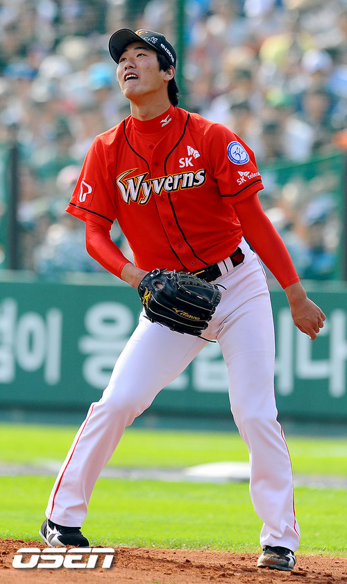 16일 오후 부산 사직구장서 열린 2011 롯데카드 프로야구 플레이오프 1차전 롯데 자이언츠와 SK 와이번스의 경기 1회말 SK 선발투수 김광현이 롯데 선두타자 김주찬에게 선취 홈런을 허용하고 있다 . 롯데는 예상대로 가장 컨디션이 좋았던 장원준을 그대로 PO 1차전 선발로 내세웠고, 준플레이오프를 4차전으로 끝내면서 전력을 아낀 SK는 김광현을 1차전 선발 마운드에 올렸다. 롯데는 양승호 감독이 시리즈를 3연승으로 끝내겠다는 자신감을 나타냈고, SK는 준PO에서 먼저 1승을 내주고 3연승으로 리버스 스윕을 이끈 상승세를 바탕으로 치열한 경기가 예상된다. / soul1014@osen.co.kr