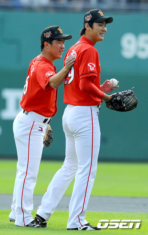 16일 오후 부산 사직구장서 열린 2011 롯데카드 프로야구 플레이오프 1차전 롯데 자이언츠와 SK 와이번스의 경기 1회말 무사 롯데 손아섭에게 안타를 허용한 SK 김광현 선발투수가 정근우 2루수의 격려를 받고 있다 . 롯데는 예상대로 가장 컨디션이 좋았던 장원준을 그대로 PO 1차전 선발로 내세웠고, 준플레이오프를 4차전으로 끝내면서 전력을 아낀 SK는 김광현을 1차전 선발 마운드에 올렸다. 롯데는 양승호 감독이 시리즈를 3연승으로 끝내겠다는 자신감을 나타냈고, SK는 준PO에서 먼저 1승을 내주고 3연승으로 리버스 스윕을 이끈 상승세를 바탕으로 치열한 경기가 예상된다. / soul1014@osen.co.kr