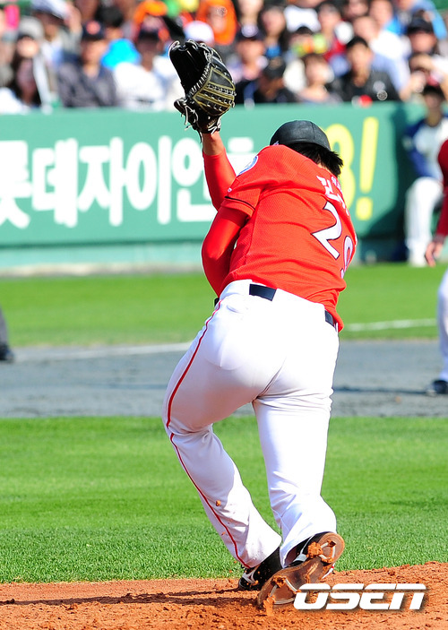 2011 롯데카드 프로야구 플레이오프 1차전 2회말 SK 김광현이 롯데 손아섭에게 적시타를 얻어 맞고 있다. 16일 부산사직구장에서 롯데 자이언츠와 SK 와이번스의 플레이오프 1차전 경기가 벌어졌다. 롯데는 예상대로 가장 컨디션이 좋은 장원준을 그대로 PO 1차전 선발로 내세웠고, 준플레이오프를 4차전으로 끝내면서 전력을 아낀 SK는 김광현을 1차전 선발 마운드에 올렸다. 롯데는 양승호 감독이 시리즈를 3연승으로 끝내겠다는 자신감을 나타냈고, SK는 준PO에서 먼저 1승을 내주고 3연승으로 리버스 스윕을 이끈 상승세를 바탕으로 치열한 경기가 예상된다. /spjj@osen.co.kr 2011 롯데카드 프로야구 플레이오프 1차전 2회말 SK 김광현이 롯데 손아섭에게 적시타를 얻어 맞고 있다. 16일 부산사직구장에서 롯데 자이언츠와 SK 와이번스의 플레이오프 1차전 경기가 벌어졌다. 롯데는 예상대로 가장 컨디션이 좋은 장원준을 그대로 PO 1차전 선발로 내세웠고, 준플레이오프를 4차전으로 끝내면서 전력을 아낀 SK는 김광현을 1차전 선발 마운드에 올렸다. 롯데는 양승호 감독이 시리즈를 3연승으로 끝내겠다는 자신감을 나타냈고, SK는 준PO에서 먼저 1승을 내주고 3연승으로 리버스 스윕을 이끈 상승세를 바탕으로 치열한 경기가 예상된다. /spjj@osen.co.kr
