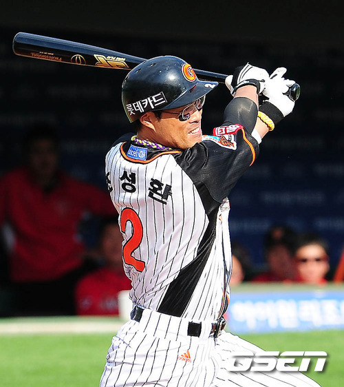 2011 롯데카드 프로야구 플레이오프 1차전 롯데 2회말 선두타자로 나온 조성환이 안타를 치고 있다. 16일 부산사직구장에서 롯데 자이언츠와 SK 와이번스의 플레이오프 1차전 경기가 벌어졌다. 롯데는 예상대로 가장 컨디션이 좋은 장원준을 그대로 PO 1차전 선발로 내세웠고, 준플레이오프를 4차전으로 끝내면서 전력을 아낀 SK는 김광현을 1차전 선발 마운드에 올렸다. 롯데는 양승호 감독이 시리즈를 3연승으로 끝내겠다는 자신감을 나타냈고, SK는 준PO에서 먼저 1승을 내주고 3연승으로 리버스 스윕을 이끈 상승세를 바탕으로 치열한 경기가 예상된다. /spjj@osen.co.kr