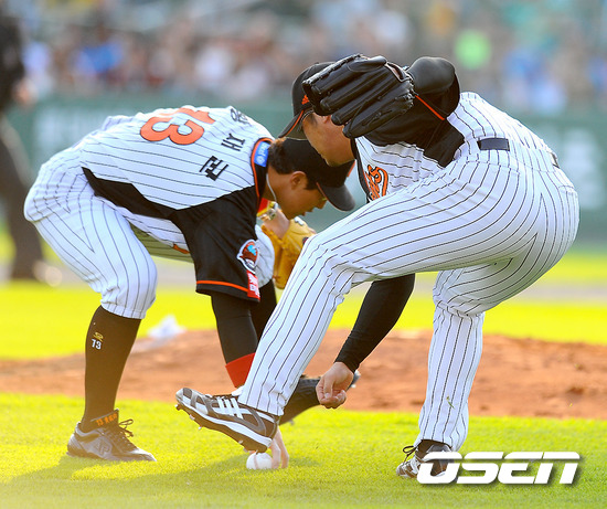 16일 오후 부산 사직구장서 열린 2011 롯데카드 프로야구 플레이오프 1차전 롯데 자이언츠와 SK 와이번스의 경기 6회초 1사 SK 정근우의 내야땅볼을 롯데 임경완 투수와 황재균 3루수가 놓치고 있다. 롯데는 예상대로 가장 컨디션이 좋았던 장원준을 그대로 PO 1차전 선발로 내세웠고, 준플레이오프를 4차전으로 끝내면서 전력을 아낀 SK는 김광현을 1차전 선발 마운드에 올렸다. 롯데는 양승호 감독이 시리즈를 3연승으로 끝내겠다는 자신감을 나타냈고, SK는 준PO에서 먼저 1승을 내주고 3연승으로 리버스 스윕을 이끈 상승세를 바탕으로 치열한 경기가 예상된다. / soul1014@osen.co.kr