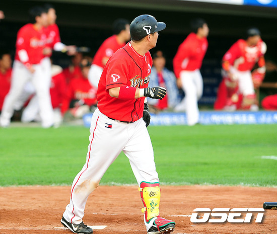 2011 롯데카드 프로야구 플레이오프 1차전 SK 7회초 1사 1루 안치용이 좌측 담장을 넘어가는 투런 홈런을 치고 타구를 바라보고 있다. 16일 부산사직구장에서 롯데 자이언츠와 SK 와이번스의 플레이오프 1차전 경기가 벌어졌다. 롯데는 예상대로 가장 컨디션이 좋은 장원준을 그대로 PO 1차전 선발로 내세웠고, 준플레이오프를 4차전으로 끝내면서 전력을 아낀 SK는 김광현을 1차전 선발 마운드에 올렸다. 롯데는 양승호 감독이 시리즈를 3연승으로 끝내겠다는 자신감을 나타냈고, SK는 준PO에서 먼저 1승을 내주고 3연승으로 리버스 스윕을 이끈 상승세를 바탕으로 치열한 경기가 예상된다. /spjj@osen.co.kr