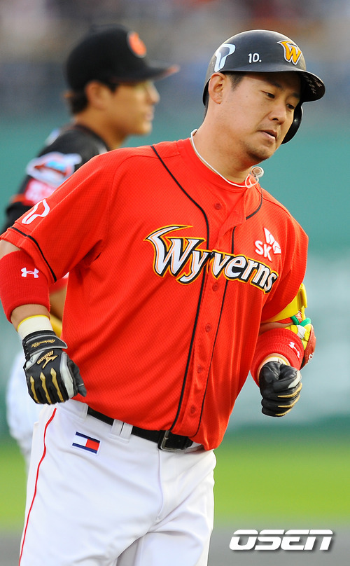 16일 오후 부산 사직구장서 열린 2011 롯데카드 프로야구 플레이오프 1차전 롯데 자이언츠와 SK 와이번스의 경기 7회초 1사 1루 상황 SK 안치용이 역전 2점 홈런을 날리고 베이스를 돌고 있다. 롯데는 예상대로 가장 컨디션이 좋았던 장원준을 그대로 PO 1차전 선발로 내세웠고, 준플레이오프를 4차전으로 끝내면서 전력을 아낀 SK는 김광현을 1차전 선발 마운드에 올렸다. 롯데는 양승호 감독이 시리즈를 3연승으로 끝내겠다는 자신감을 나타냈고, SK는 준PO에서 먼저 1승을 내주고 3연승으로 리버스 스윕을 이끈 상승세를 바탕으로 치열한 경기가 예상된다. / soul1014@osen.co.kr