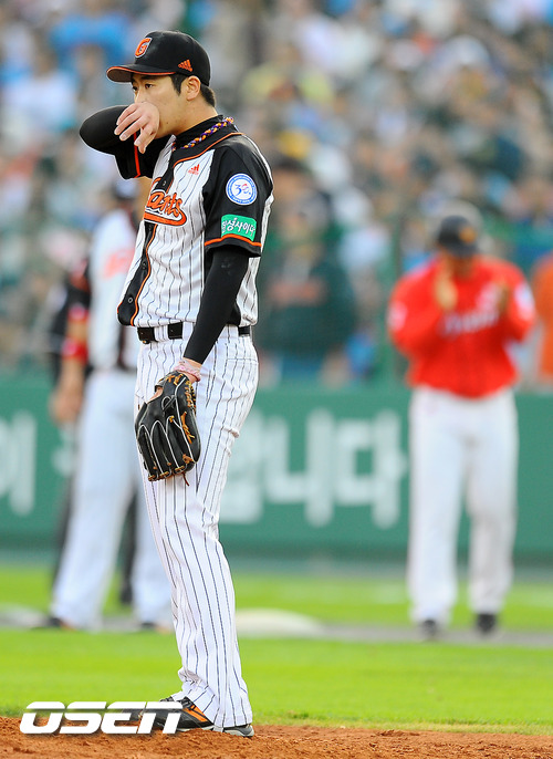 즐거운 '가을 잔치'도 새내기에게는 무서운 곳이었다. 롯데 자이언츠의 고원준(21)이 프로 데뷔 후 첫 포스트시즌 등판에서 역전을 허용하고 내려왔다. 고원준은 16일 부산 사직구장에서 열린 '2011 롯데카드 프로야구' SK 와이번스와의 플레이오프 1차전에서 6회 구원 등판해 1이닝 동안 1피안타 1홈런 2탈삼진 1사사구 2실점을 기록했다. 총 투구수는 24개(스트라이크 13개+볼 11개)를 기록했다. 고원준은 6회 1사 1,2루에서 임경완을 구원 등판, 박재상을 8구 대결 끝에 헛스윙 삼진으로 아웃시키고 최정을 3루수 라인드라이브로 돌려세운 후 급한 불을 끄고 마운드를 내려왔다. 그러나 고원준은 7회 선두타자 이호준에게 내리 볼을 던지며 볼넷을 내줬다. 고원준은 박정권을 헛스윙 삼진으로 아웃시켰지만 안치용에게 초구를 던져 좌익수 뒤 담장을 넘기는 2점 홈런을 맞았다. 동점에서 2점 차로 승리의 추가 기우는 한 방이었다. 고원준은 바로 이재곤으로 교체됐다. 2009년에 롯데에 입단한 고원준에게는 첫 포스트시즌 경험이었다. 고원준은 첫 등판답지 않은 여유로 타자들을 처리했다. 그러나 고원준은 큰 한 방에 패전위기에 몰리며 아쉬운 포스트시즌 데뷔전을 치렀다. autumnbb@osen.co.kr =부산, 박준형 기자 soul1014@osen.co.kr