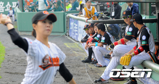 16일 오후 부산 사직구장서 열린 2011 롯데카드 프로야구 플레이오프 1차전 롯데 자이언츠와 SK 와이번스의 경기 롯데 선수들이 시구 연습하는 배우 김선아를 바라보고 있다. 롯데는 예상대로 가장 컨디션이 좋았던 장원준을 그대로 PO 1차전 선발로 내세웠고, 준플레이오프를 4차전으로 끝내면서 전력을 아낀 SK는 김광현을 1차전 선발 마운드에 올렸다. 롯데는 양승호 감독이 시리즈를 3연승으로 끝내겠다는 자신감을 나타냈고, SK는 준PO에서 먼저 1승을 내주고 3연승으로 리버스 스윕을 이끈 상승세를 바탕으로 치열한 경기가 예상된다. / soul1014@osen.co.kr