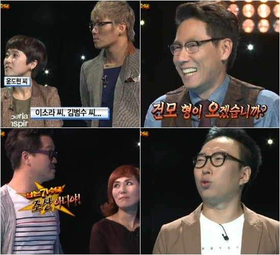 MBC '우리들의 일밤-나는 가수다'에서 매니저로 출연중인 개그맨 박명수가 김건모를 언급해 웃음을 자아냈다. 16일 방송된 MBC '나는 가수다'에서는 호주 멜버른 시드니 마이 뮤직홀에서 호주 관객들과 함께 8라운드 2차경연을 벌이는 모습이 그려졌다. 호주로 떠나기 전 스튜디오에서는 가수들의 선곡 과정이 이뤄진 가운데, 윤종신의 설명으로 윤도현, 이소라, 김범수 등 '나는 가수다' 원년멤버들이 공연에 함께 할 것임이 알려졌다. 이에 "김건모는?"이란 질문이 나왔고 박명수는 "건모 형이 오겠습니까?"라고 말해 조금은 당황스럽지만 웃음을 자아내는 분위기를 만들었다. 이에 김건모의 매니저를 했던 지상렬은 "(김건모는) '나가수' 조상 아니냐!"라고 열변을 토했고, 이에 박명수는 "네 조상이나 챙겨라"라고 농담을 던져 다시한번 웃음바다를 만들었다. nyc@osen.co.kr ☞ hoppin 동영상 바로보기
