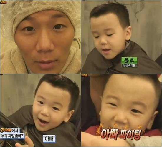 MBC '우리들의 일밤-나는 가수다'의 출연자 윤민수가 붕어빵 아들 윤후 군을 공개했다. 16일 방송된 '나는 가수다'에서는 호주 멜버른 시드니 마이 뮤직홀에서 호주 관객들과 함께 벌일 8라운드 2차경연 중간평가 과정이 그려졌다. 이날 윤민수는 셀프카메라를 촬영해 공개한 가운데, 그는 아들 윤후 군과 함께 미용실에서 머리를 하고 있는 모습을 담았다. 윤후 군은 아빠 윤민수와 똑닮은 이목구비로 귀여움을 자아냈다. 윤후 군은 "나가수에서 누가 제일 좋아?"라는 아빠 윤민수의 질문에 "아빠!"라고 외쳐 보는 이에게 미소를 자아냈다. 한편 이날 방송에서 바비킴은 김현식의 '사랑 사랑 사랑', 김경호는 고한우의 '암연', 윤민수는 '아리랑', 자우림은 강산에의 '라구요', 인순이는 김현식의 '봄여름가을겨울', 장혜진은 신승훈의 '미소 속에 비친 그대', 조규찬은 최성원의 '이별이란 없는 거야'를 선택했다. nyc@osen.co.kr ☞ hoppin 동영상 바로보기