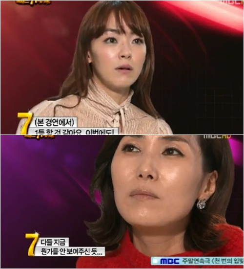 MBC '우리들의 일밤-나는 가수다'의 8라운드 2차경연 중간평가에서 자우림이 1위, 장혜진이 꼴찌인 6위를 차지했다. 16일 방송된 '나는 가수다'에서는 호주 멜버른 시드니 마이 뮤직홀에서 호주 관객들과 함께 8라운드 2차경연 중간평가 과정이 그려졌다. 강산애의 '...라구요'를 선택한 자우림 김윤아는 "분단의 아픔을 모든 한국인이 직접 겪은 것은 아니지만 한국인이라면 누구나 생각할 수 있는 공통된 정서라고 생각한다"며 "나 역시 내가 겪은 일은 아니지만 들으면 이 노래는 찡해지는 곡이다. 하지만 마냥슬픈 것은 아니기 때문에 듣는 분들에게 엄마미소가 지어지면 좋겠다"고 말했다. "편곡을 할 때 아무래도 한국 사람이니까 한국 사람들이 알 수 있는 얘기로 구성된 곡을 선택하고 싶었다"라고 실향민의 서글픔을 표현한 이 곡을 선택한 이유에 대해 설명했다. 이어 윤민수 2위, 바비킴 3위, 김경호 4위, 조규찬 5위, 장혜진 6위를 차지했다. 장혜진은 "이제 그만하라는 얘기인가"라며 다소 씁쓸해했다. 인순이는 이날 중간평가에 불참했다. 인순이는 미국 카네기홀 공연 때문에 이날 참석하지 못했다. 한편 이날 방송에서 바비킴은 김현식의 '사랑 사랑 사랑', 김경호는 고한우의 '암연', 윤민수는 '아리랑', 자우림은 강산에의 '라구요', 인순이는 김현식의 '봄여름가을겨울', 장혜진은 신승훈의 '미소 속에 비친 그대', 조규찬은 최성원의 '이별이란 없는 거야'를 선택했다. nyc@osen.co.kr