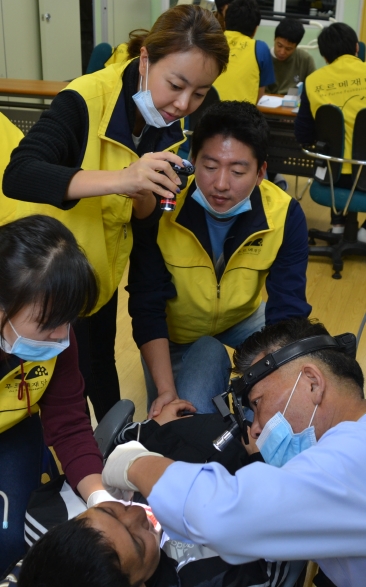 인기 그룹 '투투' 출신의 예비신부 황혜영이 선행에도 발벗고 나섰다. 황혜영은 예비 신랑인 김경록 민주당 부대변인과 함께 장애인 환자를 상대로 봉사활동을 펼쳐 눈길을 끌었다. 연예인·정치인 커플로 화제를 모은 이들 예비부부는 지난 16일 장애인 재활 단체 푸르메재단의 치과 진료 사업인 ‘미소원정대’에 봉사자로 참여했다. 두 사람은 이날 오전 서울 역삼동 해냄복지회에서 장애인 환자들의 치료를 도왔다. 황씨는 이날 이 재단의 홍보대사로 위촉됐다. 이날 봉사활동에 앞서 황 씨는 자신이 운영 중인 인터넷 쇼핑몰 아마이(http://amai.co.kr)에 ‘러블리 도너(Lovely Donor)’란 카테고리를 개설한 바 있다. 여기 진열된 상품의 수익금은 푸르메재단이 서울 상암동에 2013년 개원 예정으로 추진하는 장애어린이 전문 재활병원 건립에 보탤 예정이다. 또한 황혜영은 지난 2009년에도 KBS2 성탄 특집 ‘유쾌한 기부’를 통해 서울 신촌 현대백화점에서 자신이 운영하는 인터넷 쇼핑몰의 상품 1000여 점을 기증하고 그 판매수익 전액을 불우이웃에게 기부하는 행사에 참여했다. 황혜영은 “결혼을 앞두고 이웃에게 사랑을 나누는 일에 동참하게 돼 기쁘다. 장애어린이들을 도울 수 있는 ‘러블리 도너’에 많은 분들이 참여하길 바란다”고 말했다. 황혜영-김경록 커플은 오는 10월 23일 일요일 오후 12시 30분에 그랜드하얏트에서 결혼한다. 100c@osen.co.kr 황혜영과 김경록 민주당 부대변인이 16일 오전 서울 역삼동 해냄복지회에서 장애인 환자의 치과 진료를 돕고 있다.