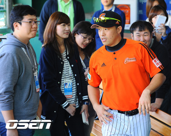 인터뷰 거절하는 손아섭,'경기로 보여드릴게요'