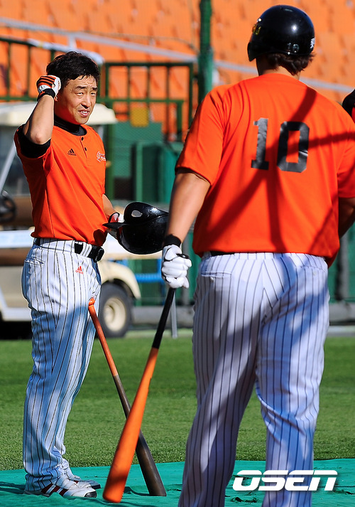17일 오후 부산 사직구장서 열리는 2011 롯데카드 프로야구 플레이오프 2차전 롯데 자이언츠와 SK 와이번스의 경기 전 롯데 손아섭이 이대호와 이야기를 나누고 있다. 손아섭은 전날 경기 9회말 1사 만루찬스에서 병살아웃됐다. 롯데와 SK는 17일 사직구장에서 벌어지는 플레이오프 2차전 선발투수로 각각 송승준과 고든을 예고했다. 1차전이 장원준(롯데)과 김광현(SK)의 좌완 에이스 맞대결이었다면 2차전은 우완 정통파 투수들의 정면승부다. 한편 1차전은 SK가 연장 10회 접전 끝에 롯데에 7-6으로 승리하며 기선제압에 성공했다. 과연 2차전에서는 송승준이 위기의 팀을 구하며 지긋지긋한 가을 악몽을 떨쳐낼지 아니면 고든이 준플레이오프 상승세를 이어가며 2연승을 이끌지 2차전이 궁금해진다. / soul1014@osen.co.kr