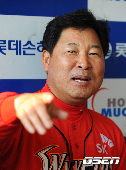17일 오후 부산 사직구장서 열리는 2011 롯데카드 프로야구 플레이오프 2차전 롯데 자이언츠와 SK 와이번스의 경기 전 SK 이만수 감독대행이 취재진과 인터뷰를 갖고 있다. 롯데와 SK는 17일 사직구장에서 벌어지는 플레이오프 2차전 선발투수로 각각 송승준과 고든을 예고했다. 1차전이 장원준(롯데)과 김광현(SK)의 좌완 에이스 맞대결이었다면 2차전은 우완 정통파 투수들의 정면승부다. 한편 1차전은 SK가 연장 10회 접전 끝에 롯데에 7-6으로 승리하며 기선제압에 성공했다. 과연 2차전에서는 송승준이 위기의 팀을 구하며 지긋지긋한 가을 악몽을 떨쳐낼지 아니면 고든이 준플레이오프 상승세를 이어가며 2연승을 이끌지 2차전이 궁금해진다. / sunday@osen.co.kr