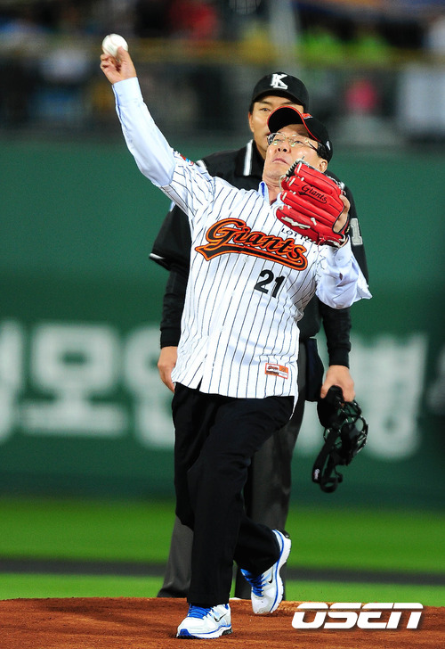 2011 롯데카드 프로야구 플레이오프 2차전서 롯데카드 박상훈 대표이사가 시구를 하고 있다. 17일 부산 사직구장에서 벌어진 플레이오프 2차전서 롯데는 양승호 감독이 예고한대로 송승준을 SK 이만수 감독은 고든을 각각 선발로 내세웠다. 송승준은 유독 SK에 시즌 내내 약세를 보여왔지만 양승호 감독은 선발로 밀어부치는 뚝심을 보여 결과가 어떻게 나올지 주목된다. 한편 1차전은 SK가 연장 10회 접전 끝에 롯데에 7-6의 기분좋은 역전승을 거두며 기선제압에 성공했다. 과연 2차전에서 송승준이 감독의 믿음에 부응, 위기의 팀을 구해 지긋지긋한 가을 악몽을 떨쳐낼지 아니면 SK 고든이 준플레이오프 상승세를 이어가며 2연승을 이끌지 관심이 집중된다. /spjj@osen.co.kr