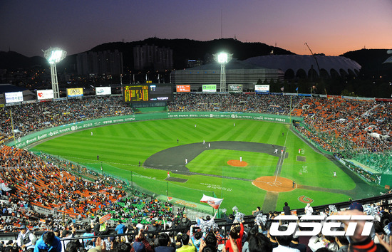 플레이오프 2차전, '뜨거운 노을이 아름다운 부산 사직구장'